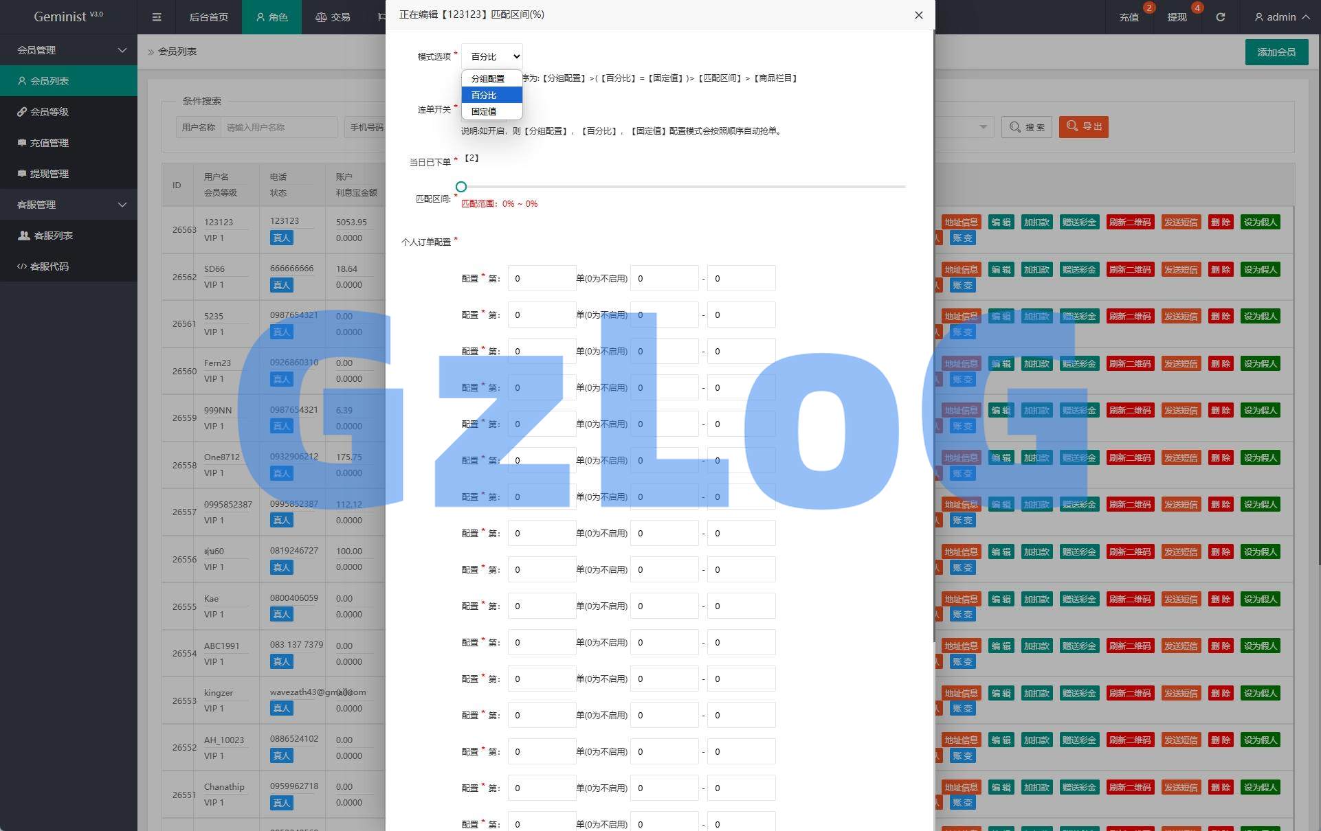 系统功能支持:支持分组、百分比、固定值、连单设置、假人等功能